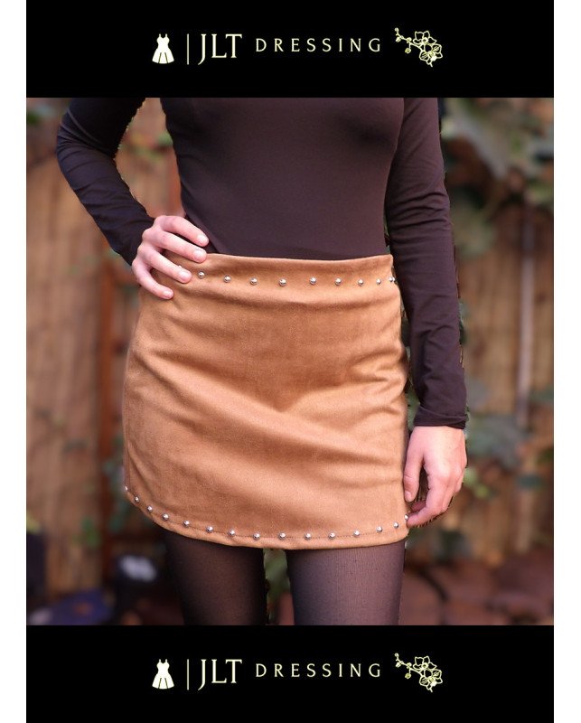 Apportez une touche de caractère à votre garde-robe avec la jupe luna. Sa teinte camel intemporelle et ses détails cloutés en font