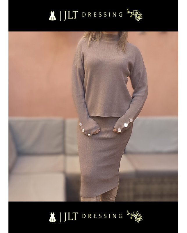 la femme moderne qui ne veut pas choisir entre style et bien-être, cet ensemble en maille côtelée est la pièce maîtresse de la saison.